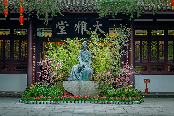 杜甫是唐詩藝術集大成者。圖為四川成都杜甫草堂大雅堂前的杜甫塑像。(視覺中國)