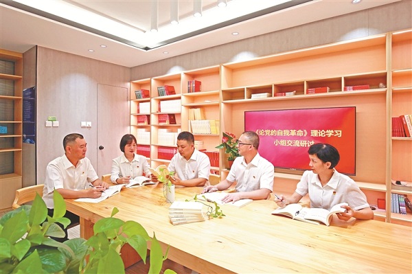 福建省漳州市薌城區紀委監委組織引導紀檢監察干部結合職責、帶著問題強化理論學習,提高本領素養。圖為近日,該區紀檢監察干部對《論黨的自我革命》一書進行交流研討。陳少松 攝