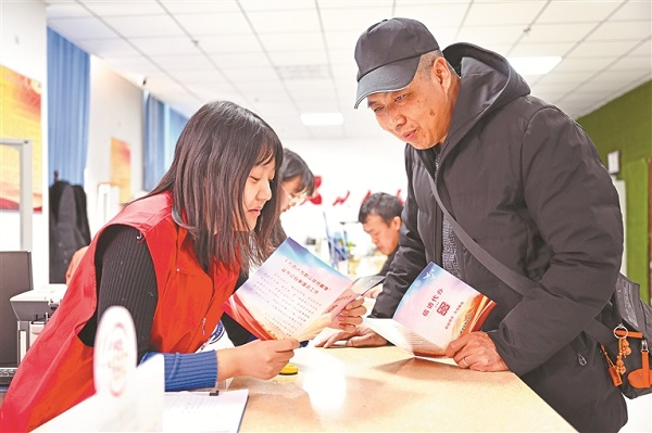 內(nèi)蒙古自治區(qū)呼和浩特市新城區(qū)將堅(jiān)持和發(fā)展新時(shí)代“楓橋經(jīng)驗(yàn)”與學(xué)習(xí)踐行“浦江經(jīng)驗(yàn)”相結(jié)合,推行信訪代辦工作。圖為近日,信訪代辦員、社區(qū)工作人員向群眾介紹相關(guān)政策。新華社記者 貝赫 攝