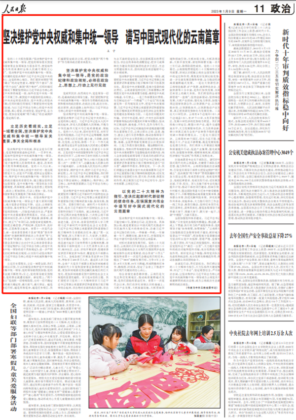 事在四方,要在中央。在堅決維護黨中央權威和集中統一領導這個重大原則問題上,地方黨委必須堅定不移。過去,云南曾發生白恩培、秦光榮等人嚴重違紀違法案件,破壞黨的團結統一,污染黨內政治生態,嚴重影響黨中央決策部署的貫徹落實。對此,云南省委深刻反思,深入開展“肅流毒、除影響、清源頭、樹正氣”專項行動,加強黨章黨規教育,切實把正確思想、嚴明紀律、優良作風、良好導向、正面典型立起來。省第十一次黨代會后,新一屆省委常委班子及省“兩委”委員帶頭倡樹“在旗幟鮮明講政治上作表率”等“五個作表率”的要求。黨的二十大閉幕后,省委常委會及時修訂出臺《中共云南省委常委會關于堅定維護以習近平同志為核心的黨中央集中統一領導的若干具體規定》,進一步嚴明政治紀律和政治規矩,以實際行動堅決維護以習近平同志為核心的黨中央權威和集中統一領導。