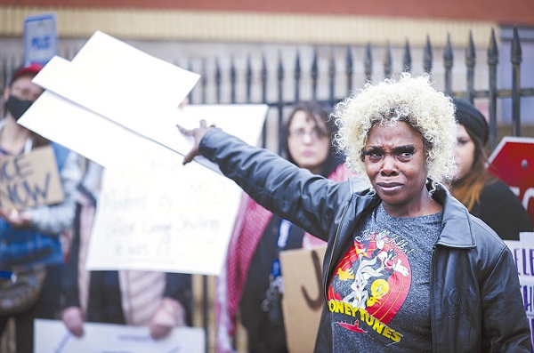 美國田納西州孟菲斯市非裔男子泰爾·尼科爾斯被當地警察暴力毆打致死。圖為當地時間2023年1月29日,孟菲斯市政廳外開始聚集抗議者,為尼科爾斯伸張正義。(圖片來源:視覺中國)