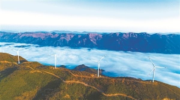 黨的十八大以來,我國堅(jiān)定不移走綠色低碳發(fā)展道路,創(chuàng)造了舉世矚目的生態(tài)奇跡和綠色發(fā)展奇跡。圖為3月10日,江西九江瑞昌市洪下鄉(xiāng)蜈蚣山風(fēng)電場(chǎng),一臺(tái)臺(tái)發(fā)電機(jī)矗立在群山、云海之中。圖片來源:視覺中國