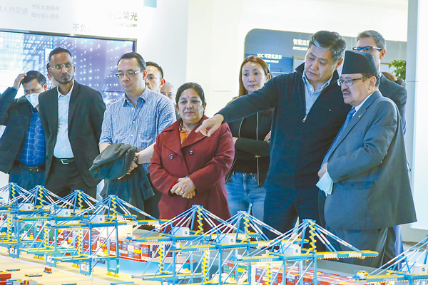 近日,來自東盟、南亞、中亞、拉美17個國家的駐華使節和外交官參訪廣西,聚焦國際陸海貿易新通道建設,深切感受中國發展速度和“一帶一路”蓬勃生機。圖為駐華使節和外交官參觀北部灣港智慧港口創新中心。圖片來源:視覺中國