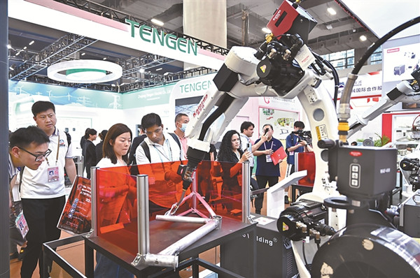 近日,第133屆廣交會(huì)在廣州琶洲展館舉行。作為有史以來(lái)規(guī)模最大的一屆廣交會(huì),中國(guó)參展企業(yè)推出了多種科技產(chǎn)品、智能制造產(chǎn)品,全力以赴搶抓外貿(mào)訂單。圖為參觀者在觀看自動(dòng)化及智能制造展區(qū)。圖片來(lái)源:視覺(jué)中國(guó)