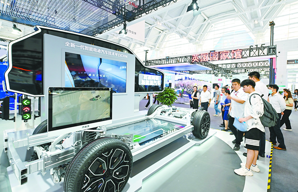 進入創新型國家行列,標志著我國科技發展已經從跟蹤模仿為主,轉向跟跑并跑領跑“三跑并存”且并跑領跑日漸增多的歷史性新階段。圖為近日,觀眾在第七屆世界智能大會參觀國產智能電動汽車技術平臺。新華社記者 孫凡越 攝
