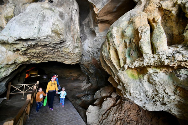 游人在位于福建省三明市三元區(qū)巖前鎮(zhèn)的萬(wàn)壽巖遺址船帆洞游覽(2020年4月9日攝)。新華社記者 姜克紅 攝