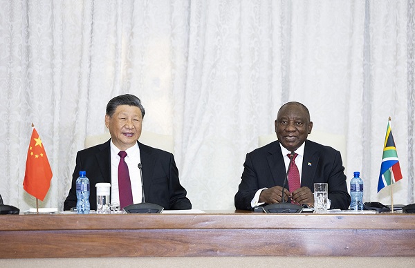 第二,中南要做共同進步的發(fā)展伙伴。互利共贏是中南合作的鮮明底色。雙方要以推進共建“一帶一路”、落實中非合作論壇“九項工程”和《中南十年合作戰(zhàn)略規(guī)劃》為主線,鞏固優(yōu)勢領(lǐng)域合作,培育合作新增長點。中方將擴大進口南非產(chǎn)品,鼓勵更多中國企業(yè)赴南非投資興業(yè)。減貧惠農(nóng)和鄉(xiāng)村振興是中國式現(xiàn)代化的重要內(nèi)容,中方愿同南非加強經(jīng)驗交流,幫助南非實施減貧示范村項目。