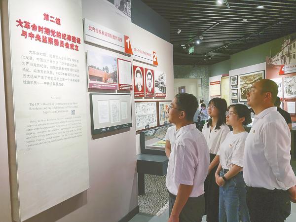 湖北省武漢經開區紀檢監察工委深入開展學習貫徹習近平新時代中國特色社會主義思想主題教育,通過讀書研討、參觀紀念館、集中培訓等方式,教育引導紀檢監察干部堅定理想信念、鑄牢對黨忠誠、站穩人民立場。圖為近日,該經開區紀檢監察干部參觀中國共產黨紀律建設歷史陳列展,學習黨的紀律建設歷史,傳承對黨絕對忠誠的紅色基因。李靜 攝