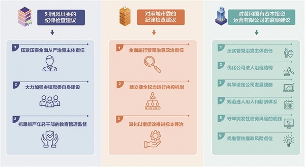 “之前,大家不知道方向、目標(biāo)是什么,不敢干、不愿干,沒(méi)有精氣神、沒(méi)有積極性。”黃岡國(guó)投有關(guān)負(fù)責(zé)人坦言。案發(fā)后,該公司根據(jù)主管部門(mén)要求和監(jiān)察建議,及時(shí)整改調(diào)整,壓實(shí)管黨治黨責(zé)任,明確發(fā)展定位,規(guī)范管理制度,強(qiáng)化內(nèi)部監(jiān)督,激勵(lì)干部擔(dān)當(dāng)作為,使公司發(fā)展逐步走上正軌。