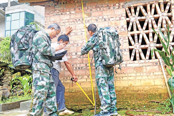 日前,云南省馬關縣委第三固定巡察組巡鄉帶村,深入八寨鎮務路者村開展“背包巡察”。圖為巡察干部查看農戶房屋改造情況。章荻 攝