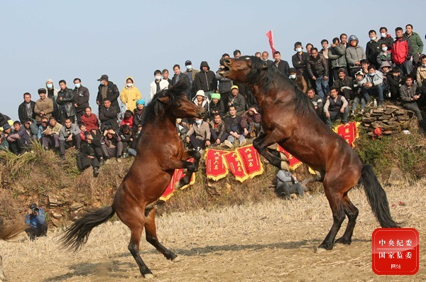斗馬是廣西壯族自治區融水苗族自治縣的傳統習俗,已有數百年歷史。臨近小寒,安陲鄉拉馬苗寨舉行斗馬活動,祈求新的一年風調雨順,五谷豐登。(廣西壯族自治區融水苗族自治縣紀委監委供 龍林智 攝)