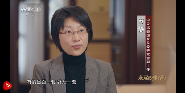 蘇靜(中央紀委國家監委研究室副主任):“兩個維護”它不是抽象的,它是具體的、實踐的,一定要落到行動上,而不是只當作一個口號,一定是要見到實效的。現在個別黨員干部在理解和執行上是存在偏差的,有的當面一套、背后一套,當“兩面人”;還有的機械套用、照抄照搬,甚至脫離實際、走偏走樣。存在這種現象,我們都是要堅決糾正的,最終的目的是要督促全黨向以習近平同志為核心的黨中央看齊,步調一致向前進。