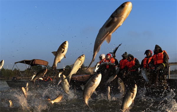 隆冬時節(jié)捕魚忙。重慶市長壽區(qū)大洪湖的漁民們?nèi)蔽溲b,泛舟湖面,撒網(wǎng)捕撈,一派魚躍人歡的豐收景象。(重慶市長壽區(qū)紀委監(jiān)委供 李文峰 攝)