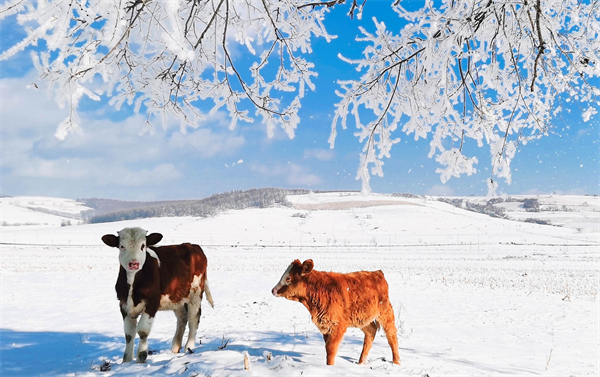 綿綿白雪把北方世界裝飾得晶瑩剔透,瓊枝玉葉,粉妝玉砌,浩然一色。延邊黃牛是吉林省延邊地區(qū)最耐寒的家畜之一,嚴寒無法阻擋它們外出欣賞冬景的腳步。(吉林省汪清縣紀委監(jiān)委供 黃繼竹 攝)