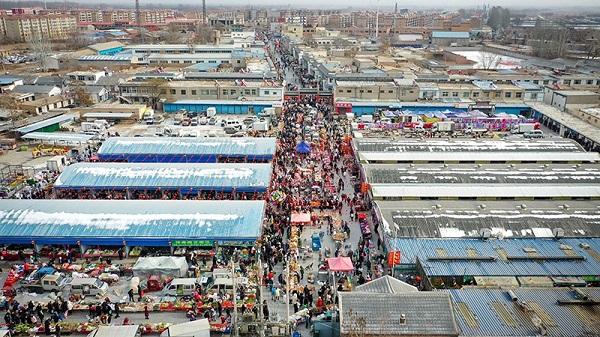 △2023年1月14日,寧夏銀川市賀蘭縣百年鄉(xiāng)村大集金貴大集上貨品琳瑯滿目,洋溢著濃濃年味,吸引人們前來選購(gòu)年貨。