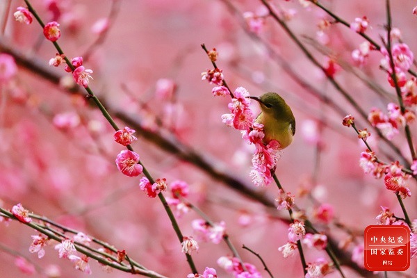 春雨過后,梅花含羞淺笑,香氣沁人心脾,吸引了一只小鳥在花枝雀躍、采食花蜜,儼然一幅春趣盎然的景象。(江西省石城縣紀委監委供 陳婷 攝)