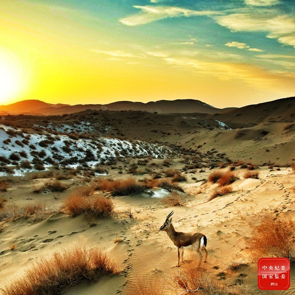 雨水時節,氣溫逐漸回升,溫暖柔潤的春天已悄然來臨,新疆維吾爾自治區焉耆縣霍拉山深處的野生黃羊沉寂了一個冬天,開始試著探出腦袋,游走在沙漠深處覓食,與落日余暉交相輝映,構成一幅靈動優美的畫卷。(新疆維吾爾自治區巴州焉耆回族自治縣紀委監委供 路綱 攝)