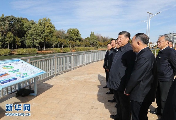 2020年1月19日至21日,習近平來到云南,看望慰問各族干部群眾,向全國人民致以新春祝福。這是20日下午,習近平在昆明滇池星海半島生態濕地考察調研。新華社記者 鞠鵬 攝