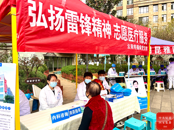 云南省昆明市盤龍區發揮黨員干部模范帶頭作用,加強志愿服務保障和支持,發展壯大學雷鋒志愿服務隊伍。圖為近日,該區王旗營社區組織的志愿醫療服務活動現場。(云南省昆明市盤龍區紀委監委 母燦全 攝)
