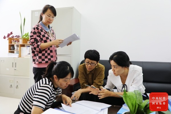云南省文山市紀委監委案件審理室的“鐵娘子”們一心扎在卷宗里,討論研究案情。她們用自己的忠誠與擔當,護法護紀,綻放光彩。(云南省文山市紀委監委 王銘堅 攝)