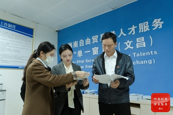 海南省文昌市紀委監委把政治監督融入日常、抓在經常,經常性深入一線開展監督檢查,督促職能部門切實履行職責。圖為紀檢監察女干部走訪海南自由貿易港人才服務窗口開展監督工作,用實際行動展示新時代巾幗風采。(海南省文昌市紀委監委 郭冰 攝)
