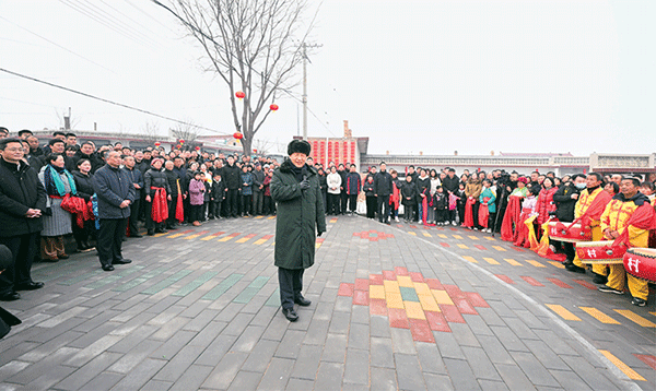 2022年1月26日至27日,中共中央總書記、國家主席、中央軍委主席習(xí)近平來到山西,看望慰問基層干部群眾。這是26日下午,習(xí)近平在臨汾市汾西縣僧念鎮(zhèn)段村文化廣場,給鄉(xiāng)親們拜年,向全國各族人民、向港澳臺(tái)同胞和海外僑胞致以美好的新春祝福。 新華社記者 李學(xué)仁 攝
