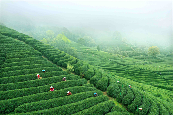 時(shí)近清明,在浙江省杭州市,明前龍井進(jìn)入開采旺季。連綿起伏的茶山中,茶農(nóng)們頭戴斗笠點(diǎn)綴其間,搶抓農(nóng)時(shí)采摘鮮葉。