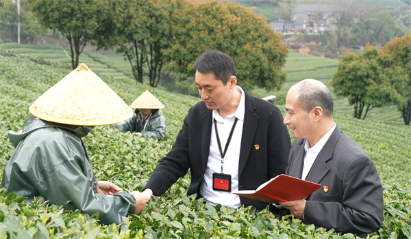 工作人員前往茶山,了解明前茶生產(chǎn)銷售情況。杭州市西湖區(qū)紀(jì)委監(jiān)委 供圖