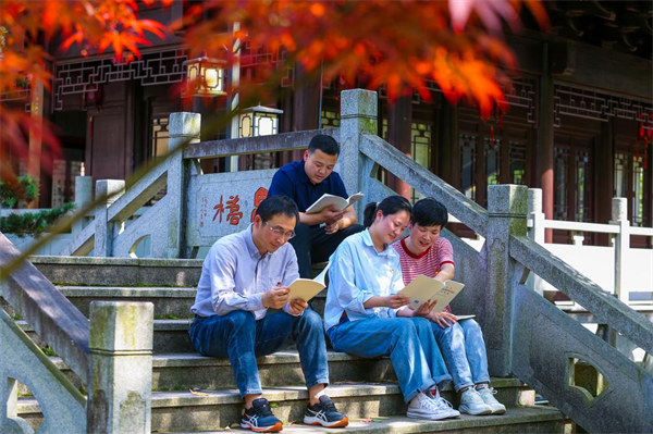 浙江省杭州市桐廬縣紀委監委通過組織全縣紀檢監察干部讀原著、學原文、悟原理,進一步堅定理想信念、凝聚奮進力量。圖為該縣紀檢監察干部利用午休時間學習習近平總書記系列重要講話精神。(浙江省杭州市桐廬縣紀委監委 聞琪 攝)