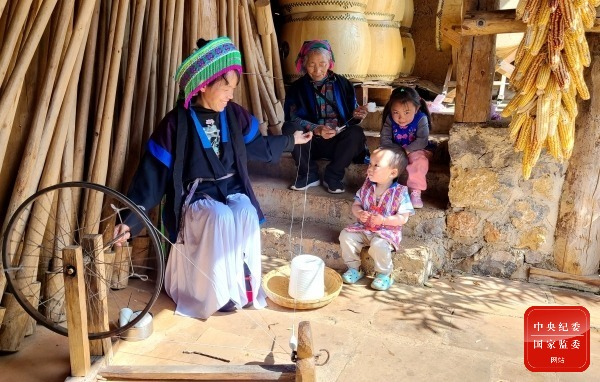 午后的陽光照射進房間,母親一邊紡線一邊和年幼的孩子開心地交談,奶奶正祥和地幫助整理紡線,構成了一幅其樂融融的美好景象。(云南省昆明市東川區(qū)紀委監(jiān)委供 邵小雪 攝)