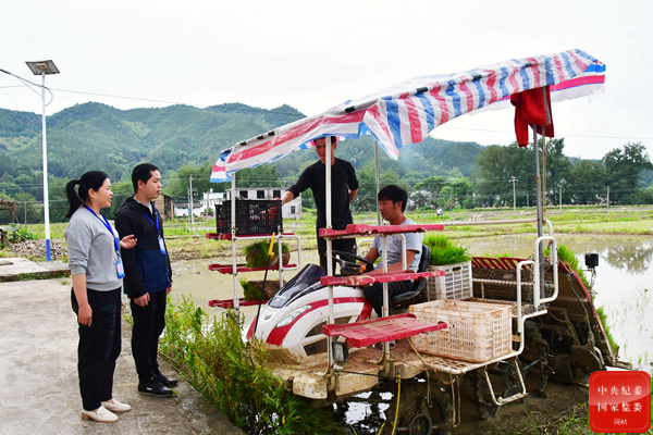 江西省全南縣紀委監委探索建立縣鄉村三級聯動監督機制,整合監督力量,通過走訪群眾、召開戶主會等方式下沉一線開展監督檢查,面對面了解群眾急難愁盼問題并推動解決。圖為該縣聯動監督工作組人員在城廂鎮樟樹村向群眾了解春耕生產及相關政策補貼落實情況。(江西省全南縣紀委監委 乾濟萍 攝)