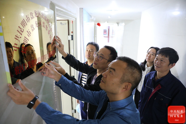 云南省昆明市盤龍區紀委監委探索以派駐形式強化對國有企業監督,通過駐點辦公、專項督查、現場督查等方式,破解體制、人員等因素制約,充分發揮“探頭”作用,推動新時代區屬國有企業全面從嚴治黨向縱深發展。圖為該區正式掛牌設立駐區開發投資集團有限公司紀檢監察組。(云南省昆明市盤龍區紀委監委 章苾鈺 攝)