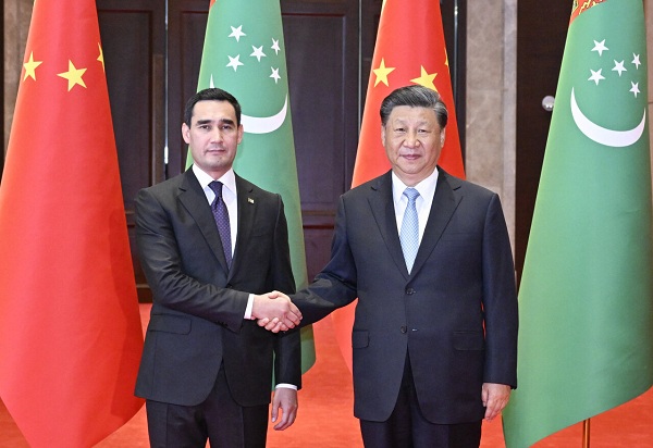 習近平指出,中土建交31年來,兩國始終秉持相互尊重、互利共贏原則推進友好合作。今年1月你對中國成功進行國事訪問,我們宣布將兩國關系提升為全面戰略伙伴關系,在雙邊層面踐行命運共同體,翻開中土關系發展新篇章。中國正以中國式現代化全面推進中華民族偉大復興,土庫曼斯坦正朝著“強國的新時代復興”目標邁進,中土關系發展潛力巨大,前景廣闊。中方愿同土方一道努力,把兩國關系不斷推向前進,更好造福兩國人民。