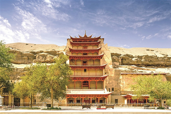 敦煌莫高窟標(biāo)志性的建筑——九層樓。季羨林認(rèn)為:“世界上歷史悠久、地域廣闊、自成體系、影響深遠(yuǎn)的文化體系只有四個(gè):中國、印度、希臘、伊斯蘭,再沒有第五個(gè);而這四個(gè)文化體系匯流的地方只有一個(gè),就是中國的敦煌和新疆地區(qū),再沒有第二個(gè)。”中華文明以其巨大的包容性,吸收世界諸文明精華并進(jìn)行創(chuàng)新,敦煌藝術(shù)是其中生動(dòng)的代表。