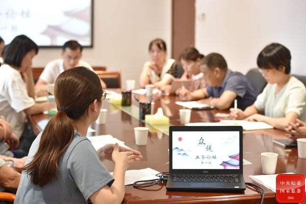 廈門市集美區紀委監委定期開展“眾•說”業務工作論壇活動,組織各鎮(街)紀(工)委工作人員及村居紀檢委員代表,圍繞“如何深入開展‘近鄰監督’”等主題展開業務探討,其間還通過知識競答等環節進一步鞏固紀檢監察干部業務知識。圖為基層紀檢監察干部進行交流研討。(廈門市集美區紀委監委 劉煌 攝)