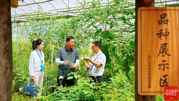 浙江省磐安縣紀委監委緊盯基層小微權力運行,探索建立村級監察工作聯絡站片區協作機制,通過片區協作、聯合監督等方式,有效破解基層監督工作中碰到的難題。圖為該縣紀檢監察干部在中藥材種質資源圃了解情況。(浙江省磐安縣紀委監委供 楊凌 攝)