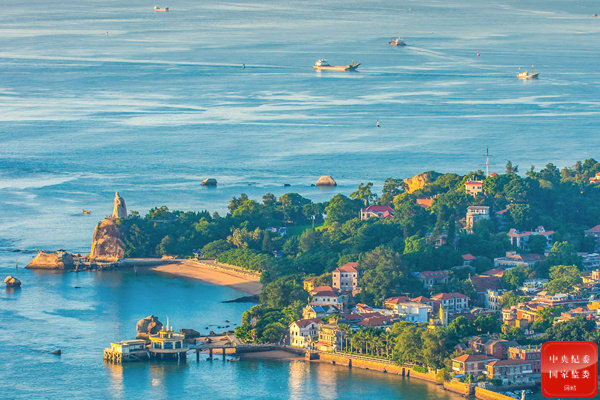 潮起潮落,紅瓦白墻之間,風吹樹搖葉婆娑。游船劃過海面,點點波光隨著海浪翻涌閃爍。7月的廈門鼓浪嶼,海島風情正濃。(廈門市翔安區紀委監委供 吳偉 攝)