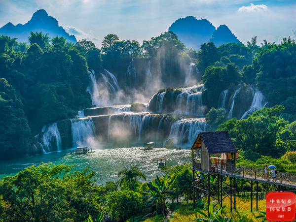 盛夏時節,廣西壯族自治區大新縣德天瀑布進入豐水期,浩浩蕩蕩的歸春河水從山崖上跌宕而下,撞在堅石上,水花四濺,水霧朦朧,水聲振蕩河谷,場面蔚為壯觀。(廣西壯族自治區賓陽縣紀委監委供 曾祥忠 攝)