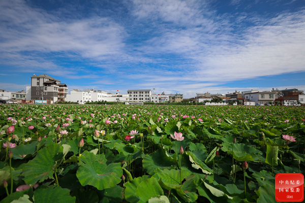 七月仲夏,在云南省陸良縣三岔河鎮清河社區“荷花里”,朵朵荷花競相開放,吸引眾多游人前來游玩觀賞,感受夾雜在陣陣“荷風”之中的愜意清涼。(云南省陸良縣紀委監委 王勇 攝)