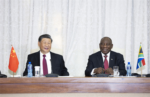 習近平指出,這是我第四次以中國國家主席身份訪問南非。10年來,我親歷了中南關系的蓬勃發展。中南關系之所以好、中南友誼之所以深,關鍵在于兩國兩黨在各自發展道路上休戚與共,結下了深厚友誼。當前,中國正在以中國式現代化全面推進中華民族偉大復興,南非正在探索符合本國國情的現代化道路。中方愿同南方一道,傳承友好、深化合作、加強協作,推動中南全面戰略伙伴關系不斷邁上新臺階,攜手構建高水平中南命運共同體。
