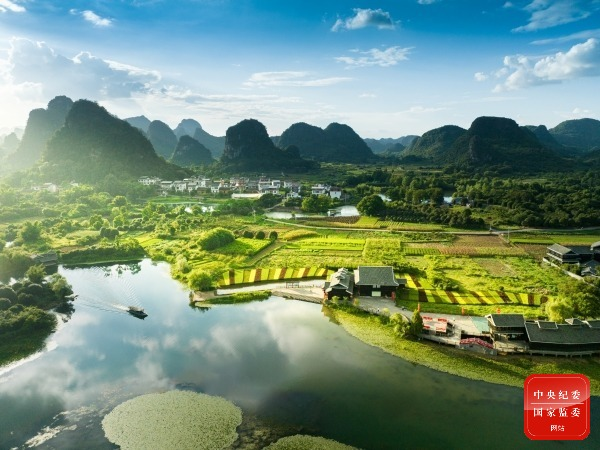 廣西壯族自治區(qū)陽朔縣山村湖畔田色如錦、屋舍儼然。波光瀲滟里,輕舟漾起陣陣漣漪。不知不覺間,秋風已將濃綠的田野涂抹得五彩斑斕,一陣陣稻香沁入心脾,又是一年好“豐”景。(廣西壯族自治區(qū)陽朔縣紀委監(jiān)委供 夏立慧 攝)