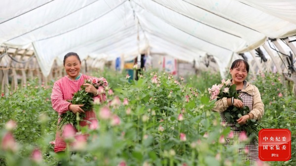 在云南省曲靖市馬龍區(qū)月望鄉(xiāng)玫瑰花種植基地,綠葉間朵朵玫瑰競相綻放、香氣四溢,花農們忙著采摘,喜笑顏開。(云南省曲靖市馬龍區(qū)紀委監(jiān)委供 張玉玲 攝)