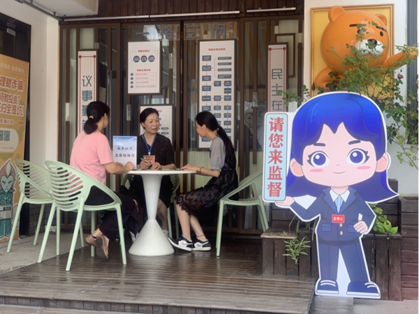 浙江省杭州市臨平區紀委監委堅持“一盤棋”理念,構建紀委統籌、部門主抓、派駐支撐、齊抓共管的監督格局,注重提高村級監察工作聯絡站履職能力,補齊基層監督短板。圖為該區廟東社區監察聯絡日接訪活動。(浙江省杭州市臨平區紀委監委供 譚振潔 攝)