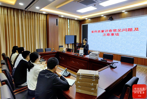 貴州省習水縣紀委監委通過加大對案件質量評查過程中發現問題的梳理分析和規律總結,梳理共性問題及疑難復雜問題清單,印發模擬卷宗,做好實例解析,強化鄉鎮紀檢監察機構證據意識和程序意識。圖為縣紀委監委組織鄉鎮審理人才專題培訓,對案件質量評查常見問題進行講解。(貴州省習水縣紀委監委 王丹 攝)