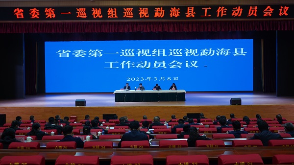 按照省委統一部署,3月8日,省委第一巡視組巡視勐海縣工作動員會召開。會前,省委第一巡視組組長葉翠萍主持召開與勐??h委書記高江泉、縣長陶艷的見面溝通會,通報了巡視任務,提出了工作要求;省委第一巡視組副組長紀明良傳達了省委書記王寧聽取巡視情況匯報時的講話要求。會上,葉翠萍作了動員講話;紀明良通報了干擾對抗巡視工作的典型問題;高江泉主持會議并表態講話。
