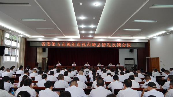根據(jù)省委統(tǒng)一部署,2023年6月27日,省委第五巡視組向西疇縣反饋了巡視情況。會(huì)前,省委巡視組傳達(dá)了省委書記王寧在主持省委常委會(huì)會(huì)議聽取十一屆省委第四輪巡視情況匯報(bào)時(shí)的講話要求;向文山州委書記陳明,州委副書記、州長(zhǎng)馬忠俊通報(bào)了巡視情況;向西疇縣委書記黃明勇反饋了巡視情況。會(huì)上,參會(huì)人員集中學(xué)習(xí)了習(xí)近平總書記關(guān)于巡視整改的重要指示精神及黨規(guī)黨紀(jì)有關(guān)規(guī)定要求;省委巡視組組長(zhǎng)趙基向西疇縣反饋了巡視意見,對(duì)巡視整改提出明確要求;文山州委常委、州紀(jì)委書記、州監(jiān)委主任巫運(yùn)康表態(tài)并提整改具體要求;黃明勇主持反饋會(huì)議并表態(tài)。