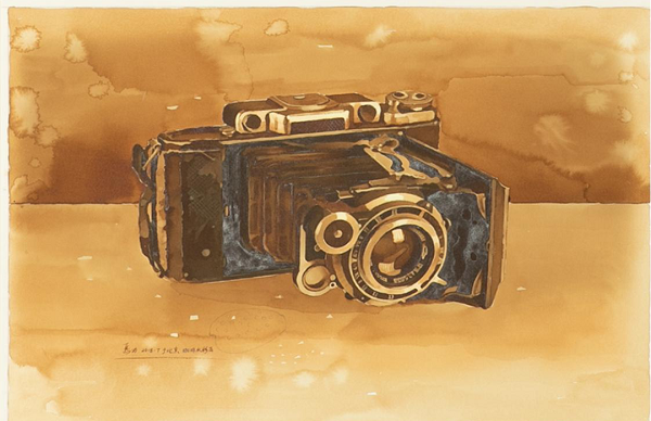 這組咖啡畫便是馬力以咖啡為主顏料創(chuàng)作的。獨特的咖啡色、懷舊的色彩、淡淡的鄉(xiāng)愁,讓人回味無窮……