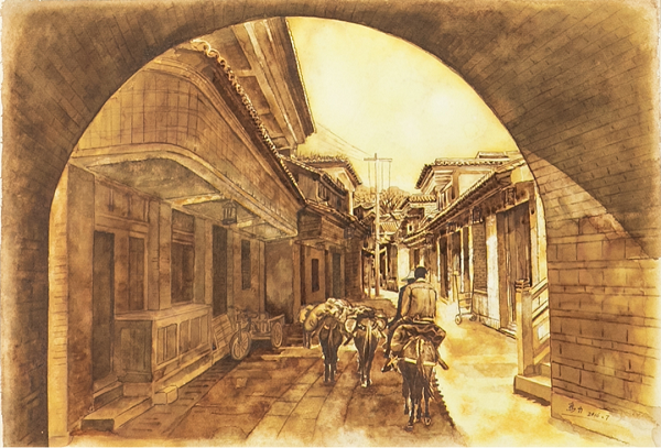 咖啡畫《茶馬古鎮(zhèn)之一》