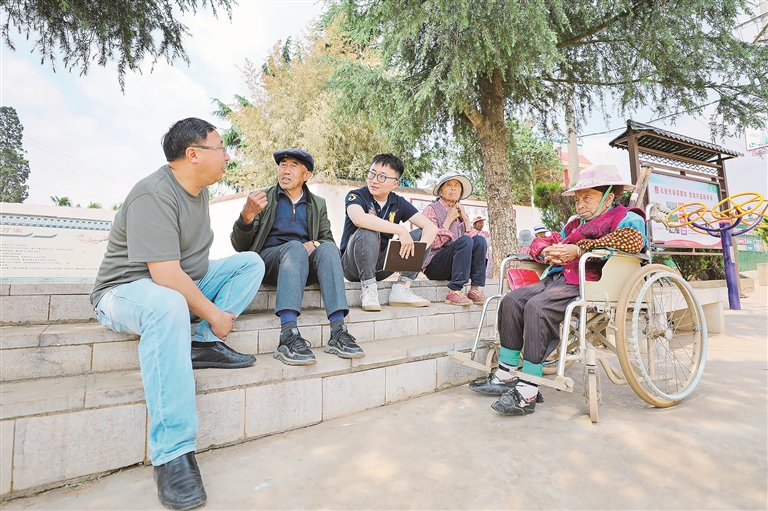 云南省陸良縣紀委監委聚焦民生領域群眾關切,組織紀檢監察干部深入基層一線開展走訪調研。圖為該縣紀檢監察干部在召夸鎮新莊村向群眾了解相關情況。王勇 攝