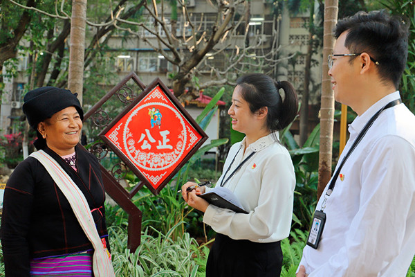 云南省西雙版納傣族自治州紀(jì)檢監(jiān)察干部在檢視整治自查自糾中深入基層傾聽群眾意見建議。周榮 /攝